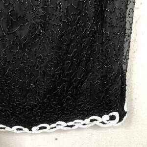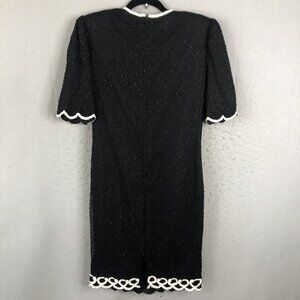 Vintage Brilliante by JA Dress Womens Large Black White Silk Beaded Cocktail