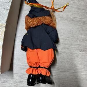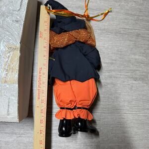 This vintage Brinn's porcelain doll calendar clown from October 1986 is a cute Halloween collectible featuring a witch theme. The 14-inch doll has curly hair and a light complexion, depicting a girl doll in a limited edition original piece. Made in Korea, this collectible item is perfect for fans of Brinn Dolls and vintage doll enthusiasts looking to add a unique and charming piece to their collection.