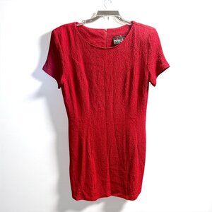 Vintage Brioche California Red Textured Short Sleeve Shift Dress Mini S 80s 90s