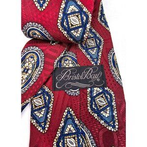 Vintage Bristol Bay Red & Blue Silk Tie With Geometric Floral Pattern
