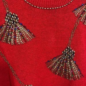 Vintage Britany Leigh Sweater Red Beaded Sequined Tassel Knit