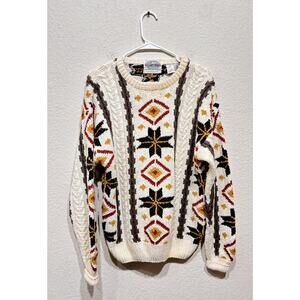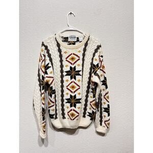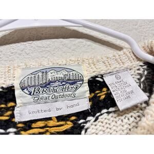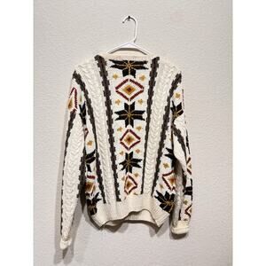 Vintage Britches Sweater Cableknit Aztec Geometry XL Ramie Cotton Cream