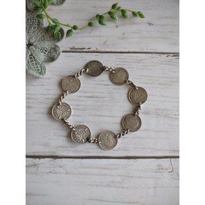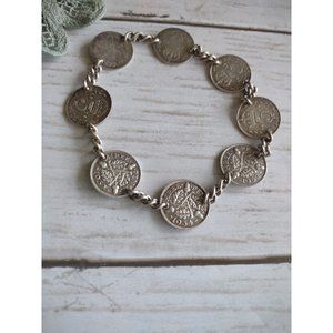 Vintage British Three Pence Silver Coins Dating 1873-1934 Bracelet No Clasp READ