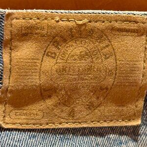 These are a fabulous pair of 1980's Brittania light wash jeans, featuring the large leather tag on the back waist, and monogrammed button and rivets. Made with heavy 100% cotton, these are meant to last - which they clearly have done.