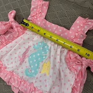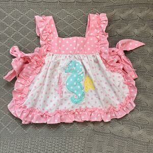 Vintage Broadway Kids Pink Polka Dot Apron Pinnie Tunic Seahorse Design ~9M