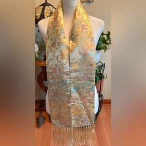 Vintage Brocade Wrap Special Occasion Wrap Fringe Scarf Measurements 58x10.75