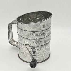 Vintage Bromwell’s 3 Cup Flour Sifter USA Tin Hand Crank Mid Century Farmhouse