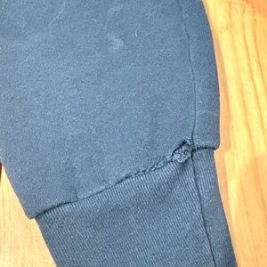 Embrace timeless comfort with the Lee Blue Crewneck Sweater, featuring a classic pullover design with ribbed cuffs and collar. Made from a soft cotton blend, this sweater offers a cozy fit perfect for any casual occasion. Its simple yet stylish look makes it a versatile addition to your wardrobe. 1990s broncos. Small hole in wrist see photos.