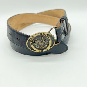 Vintage Bronze Belt Buckle Belt West Virginia Gold Logger Miner 1863 Registered