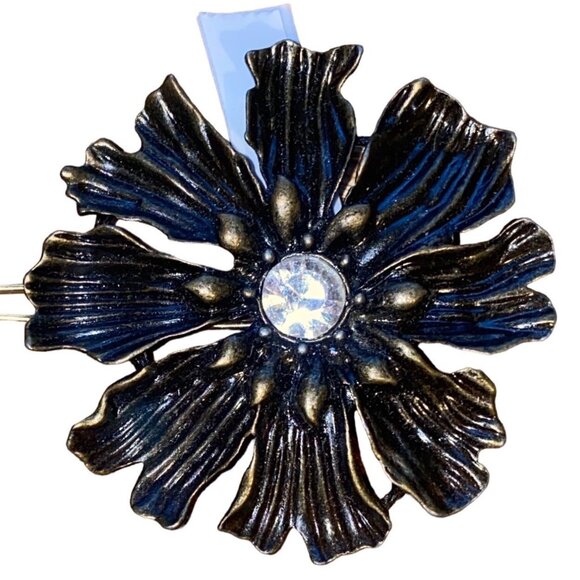 Vintage Bronze Flower Hair Clip With Rhinestone Center
