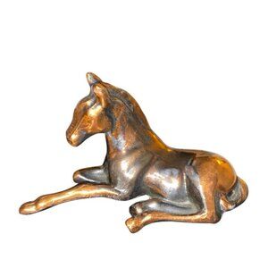 Vintage Bronze Horse Figurine Sculpture Small Horse Laying Down Mini Collectable