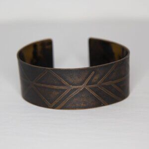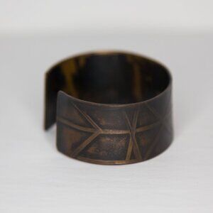 Find your inner Valkyrie with this bronze cuff bracelet. Designed with imprinted runes of the Elder Futhark runic Norse alphabet, this whole bracelet is a bindrune. Bronze, slightly bendable to adjust for best fit. Bracelet is 7 inches around and 1 inch wide. Rustic finish with some patina on it.
