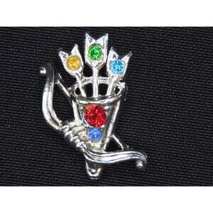 Vintage Brooch 2 Scatter Pins Bow and Arrow Silver Tone Rhinestone Cupids