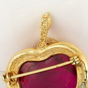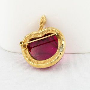 Vintage Brooch Apple Jelly Belly Signed Sarah Coventry Pink Gold Tone Teacher