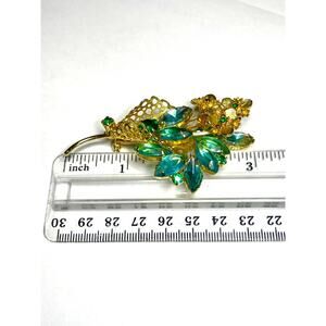 Vintage Brooch Blue Green Rhinestone Vtg Costume Jewelry Pin Lot JU10
