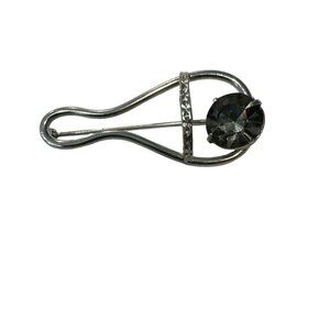 Beautiful vintage brooch by Bond Boyd with chunky round Swarovski Smoky Grey Rhinestone pin, 60's Measurements: Width: 19 mm Length :45 mm This is a vintage piece it is bound to have some wear, as is the nature of vintage/pre-owned items. Please refer to he pictures as they are part of the description. There is no damage to the plating. Purchasing this item, you agree that you have read the description of any wear and/or viewed it in the images.