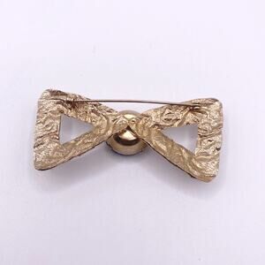 Measuring approximately 2.5 inches long, this brooch showcases classic mid-century craftsmanship with detailed metalwork and brilliant glass accents. It is in very good vintage condition, with only minor signs of age expected from a piece of this era.
