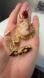 This exquisite jewelry set features a stunning gold cameo brooch, a red rose pin, and a delicate butterfly brooch.