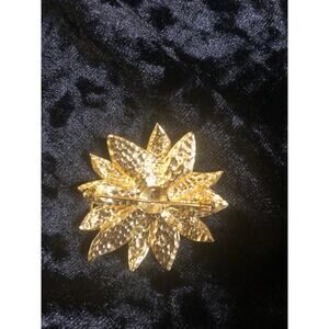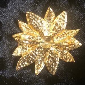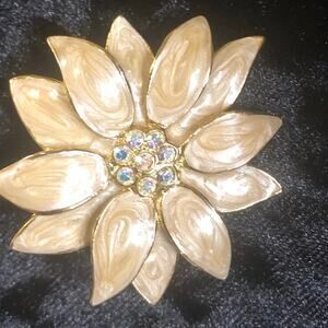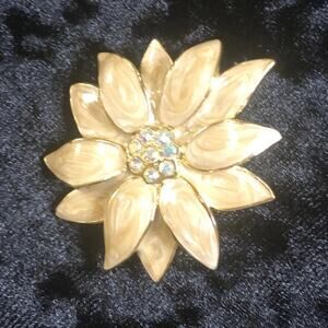 Vintage Brooch Enameled Cream and White swirled Rhinestones Goldtone 1.75x1.75. Beautiful Brooch. Preowned