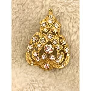 Vintage Brooch Filagree Pin Gold with Stones