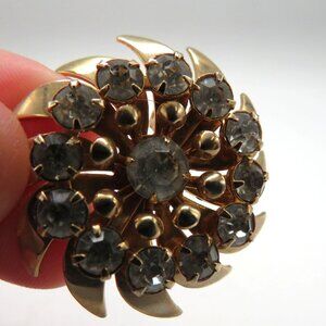 Vintage Brooch Floral Gold Tone Rhinestone Swirl Flower Petals Pin