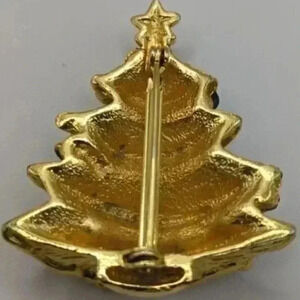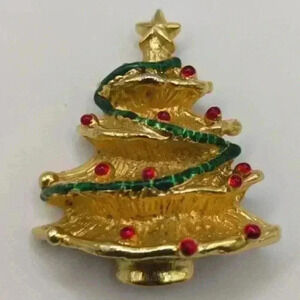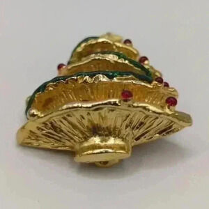 Vintage Brooch Gold Tone Holiday Christmas Tree Pin Brooch Green Red Enamel Pin
