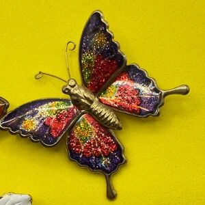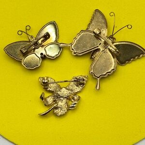 Vintage Brooch Lot Butterflies & White Flower Enameled Naturecore