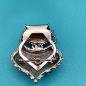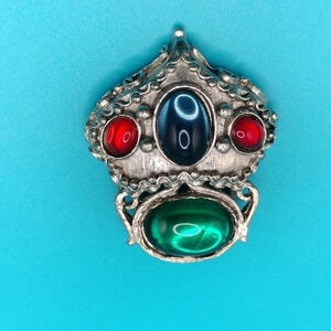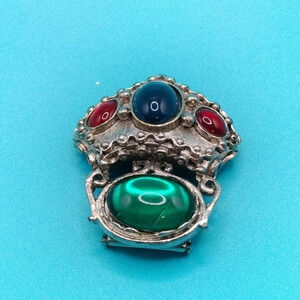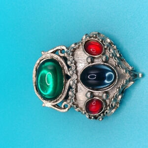 Vintage Brooch Moghul Scarf Clip Cabochon Crown Royal Unsigned