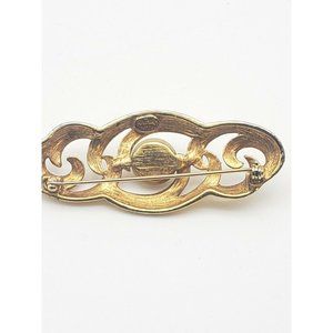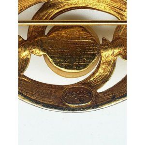 Vintage Brooch Pin Gold Tone Napier Classic Style Faux Pearl 2 1/2”