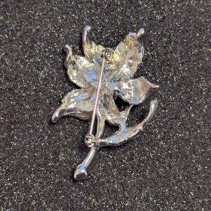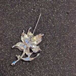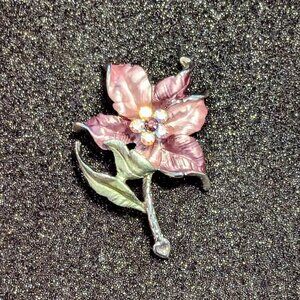 Vintage Brooch Pin Rhinestone AB Arora Borealis Flower Silver Statement Enamel