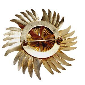 Vintage Brooch Pinwheel Pin Round Starburst Gold Tone 2.5"
