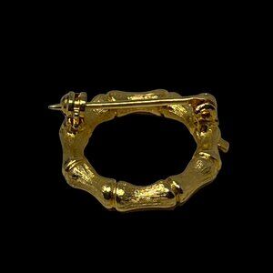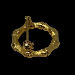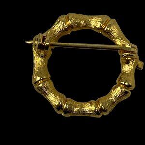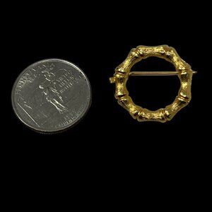 Vintage Brooch Round Circle Textured Gold Tone Bone Shaped Segments Pin