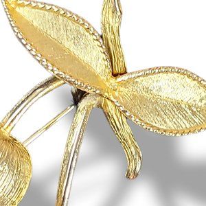 Vintage Brooch Signed Sarah Coventry Gold Tone Cherries