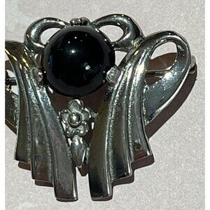 Vintage Brooch/Pin Sterling Victorian Goth Black Onyx Floral Art Deco Design