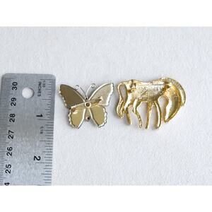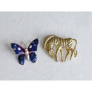 Vintage Brooches 2 PC Gold Tone Zebra Purple Butterfly Animal Pin Set Cute Retro