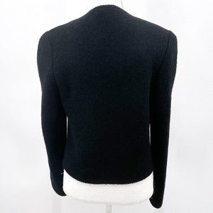 Vintage pure virgin wool blazer style evening jacket in black by Brooks Brothers; size 12. Cable knit style detail on front, snap button closure.