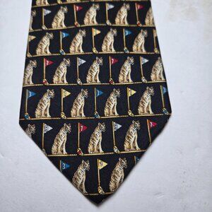 Vintage Brooks Brothers Blue Silk Tie Tigers & Golf Made in USA 3.75" x 57"