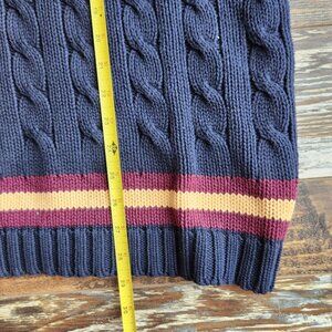Vintage Brooks Brothers Cable Knit Cricket V-Neck Sweater Navy Blue 100% Cotton Heavy Weight