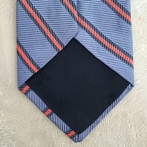Vintage Brooks Brothers Makers All Silk Men's Necktie Regimental Stripe Repp Blue Coral Stripe. Hand finished in USA. Fabric Woven in England. Keeper Label is Intact. Bar Tack Intact. Seam Intact. Small Section of Seam that is Loosening, But Seam Is Still Fully Intact (See Last Pic). Tipping in Navy Blue. Adjustable, Self Tie. Dry Clean Only. Classic Width and Length. In Great Condition.