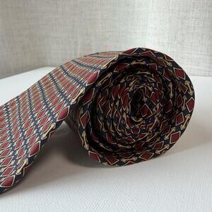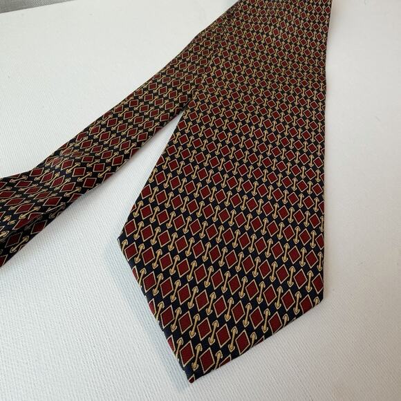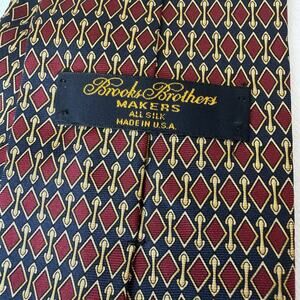Vintage Brooks Brothers Makers Tie All Silk USA Geometric Red Gold Navy 80s-90s