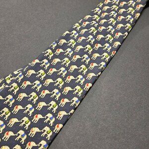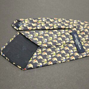 Vintage Brooks Brothers Pure Silk Navy Elephant Print Tie Made In USA 58" X 3.5"