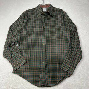 Vintage Brooks Brothers Shirt Men Medium Green Flannel Button Down Long Sleeve M