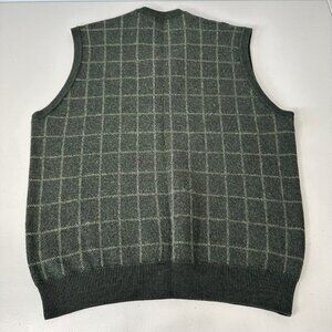 Vintage Brooks Brothers Sweater Vest Green Windowpane Fine Merino Wool Large