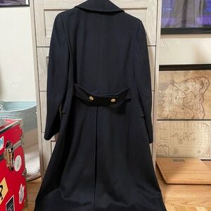 Vintage navy blue Brooks Brothers women’s wool trench coat, size S. Lining needs a little restitching along the bottom hem, otherwise in great condition.