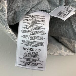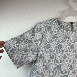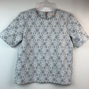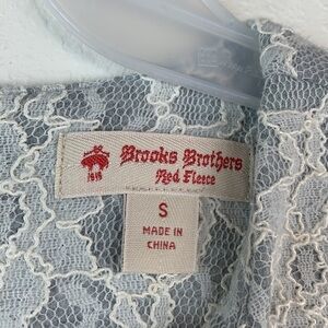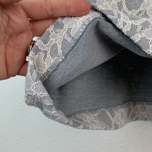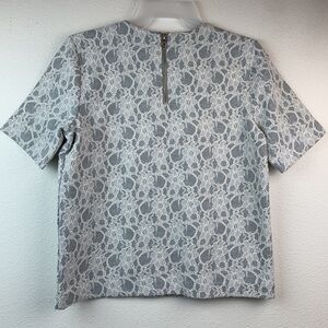 Brooks Brothers red fleece line: cool gray short sleeve top bonded with lace. Back zip at neck, tailored structured fit, perfect under a suit coat. Heavier weight.