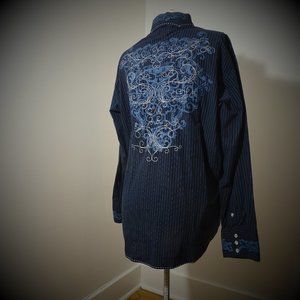 This is and incredible version of the Panhandle Slim Brooks and Dunn Western Shirt. Beautifully embroidered and elegant snap buttons. This shirt will not disappoint! OPEN TO ALL OFFERS!