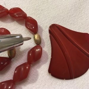 Vintage Brown Acrylic Bead Necklace & Earrings