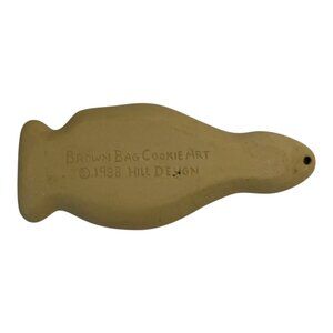 Add a touch of vintage charm to your baking collection with this Brown Bag Cookie Art Bunny Mold by Hill Design, dated 1988. This ceramic mold features an intricately detailed bunny design, dressed in a suit and holding a carrot, perfect for creating unique Easter or seasonal cookies. The mold shows minor wear consistent with its age, adding to its antique appeal. A great find for bakers, collectors, or anyone who loves nostalgic kitchenware!