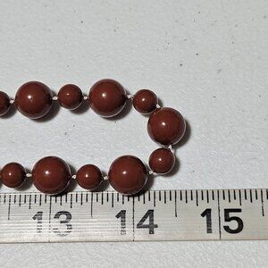 This vintage necklace features brown beads in varying sizes, offering a timeless and elegant look.