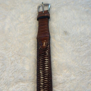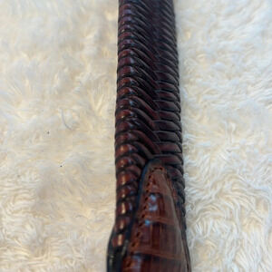 Vintage from the 1990s Brown full grain Leather I am not sure who the maker is solid brass buckle crocodile pattern and braided mix. Style 4154–1. Sz 34/85. 9004A.